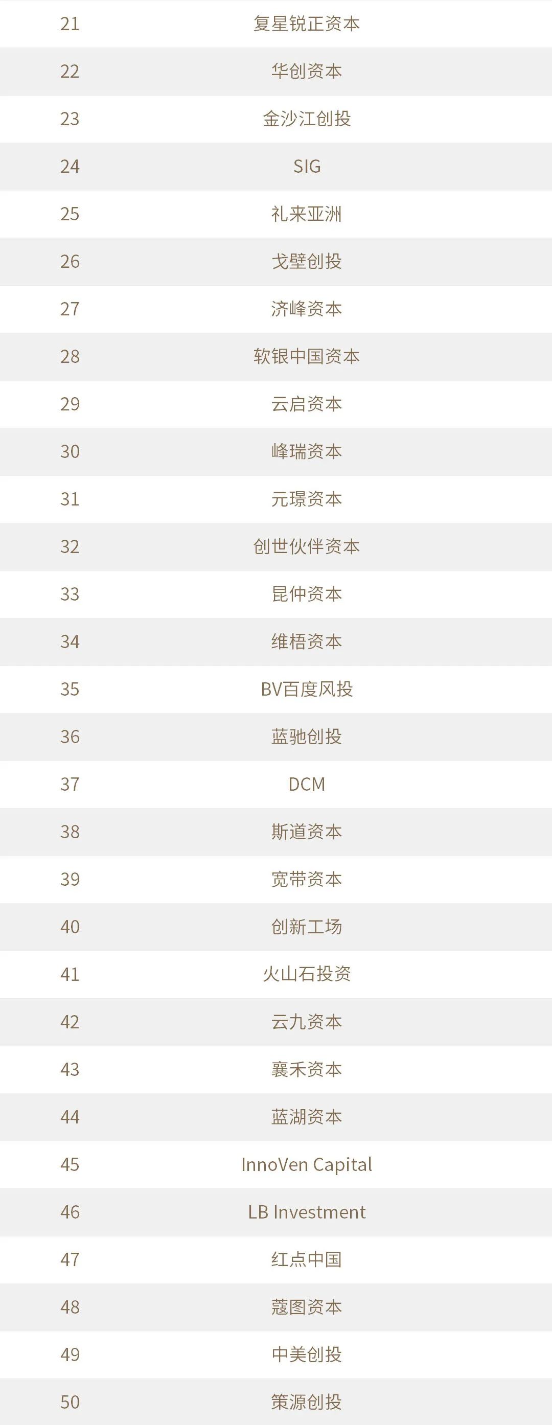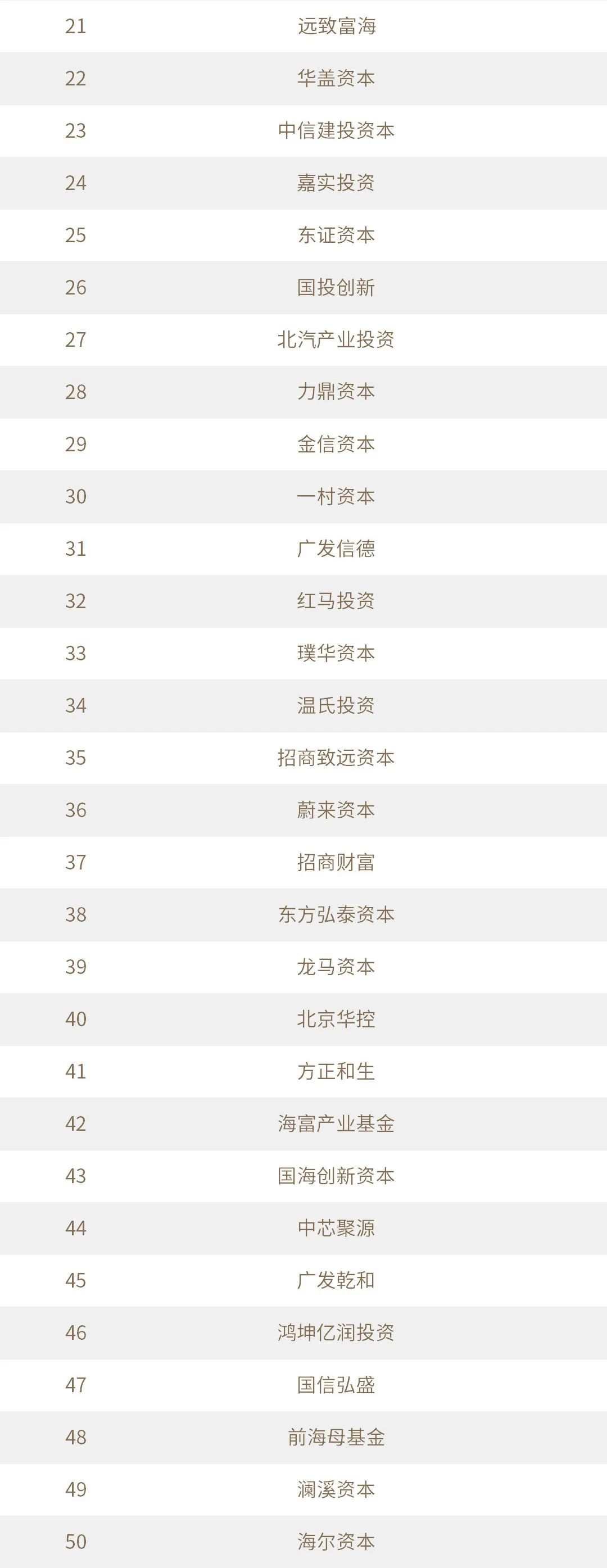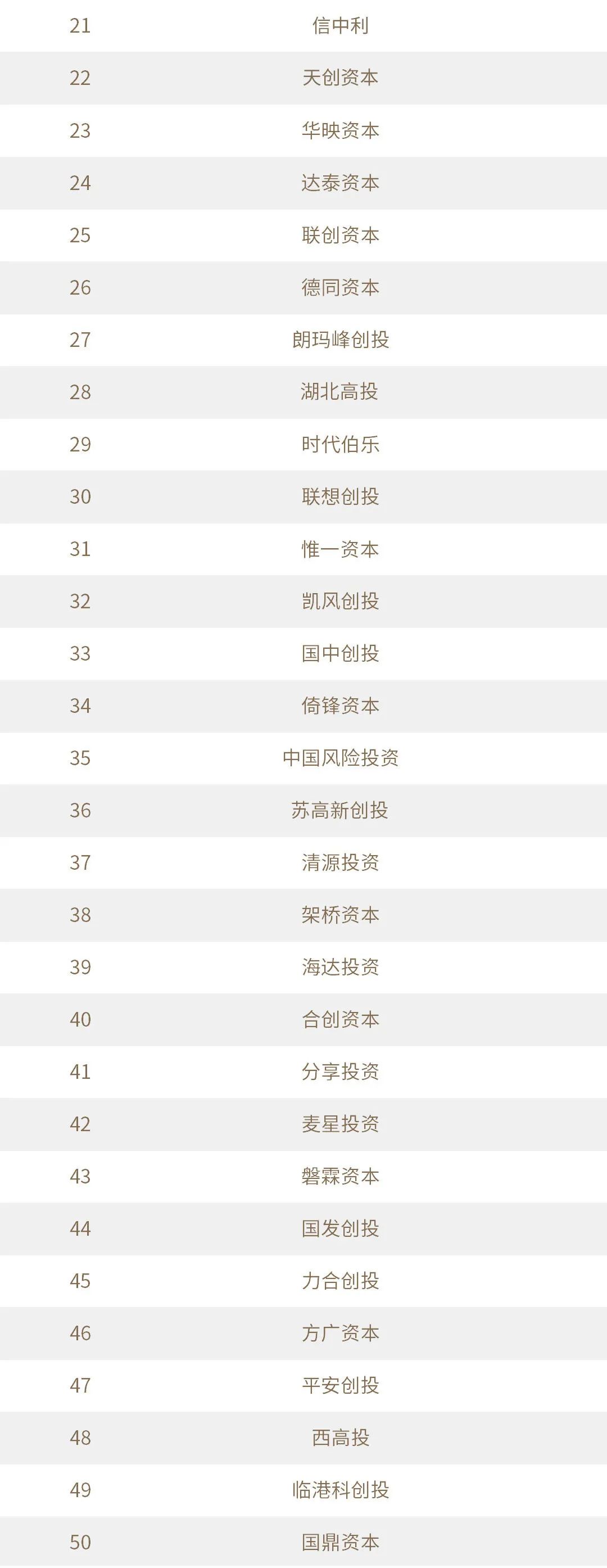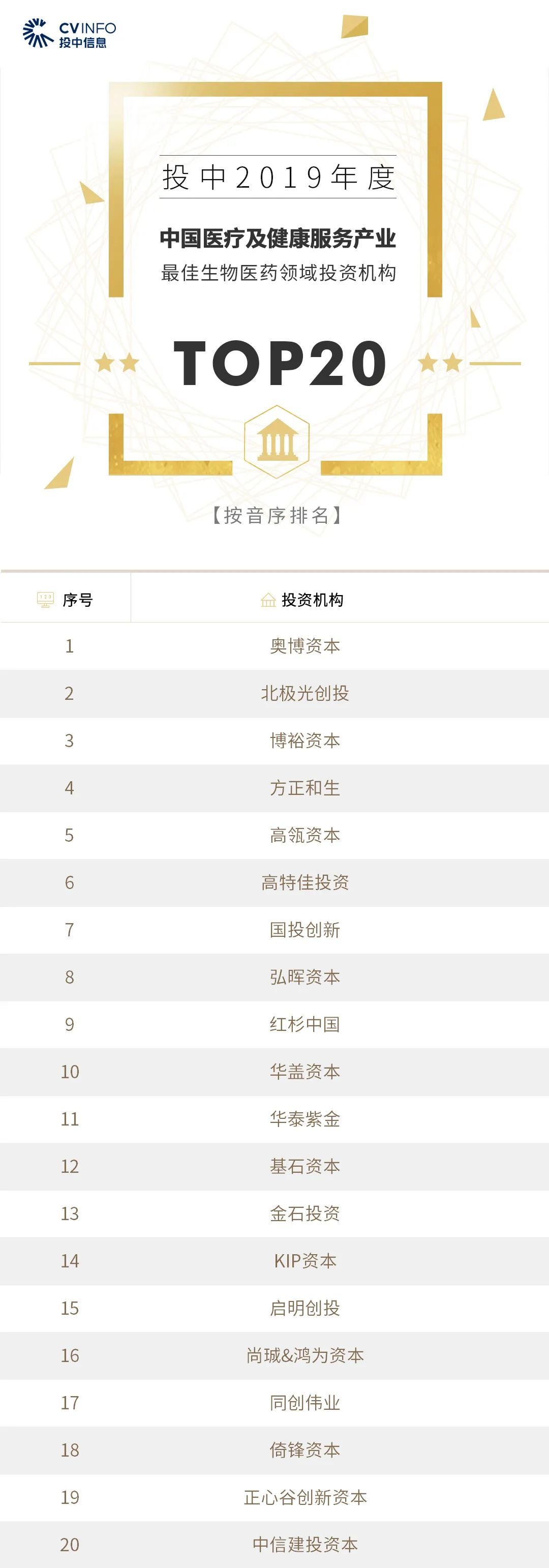 本次榜单共揭晓“2019年度最佳创业投资机构”、“2019年度最佳私募股权投资机构”、“2019年度最佳早期创业投资机构”、“2019年度最佳有限合伙人”、“2019年度最佳产业投资机构”等奖项。
