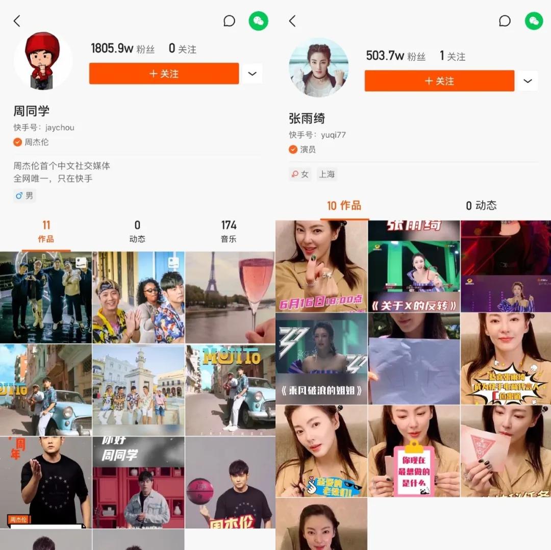 最近,快手开始了明星化布局,用来增加生态多元性,分散头部主播的流量,例如签约周杰伦、张雨绮等人。