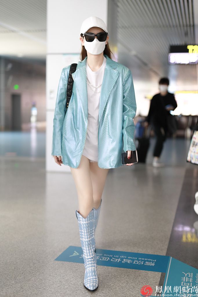戚薇穿蛇皮西装slay全场 下衣失踪穿搭法两米长腿霸屏
