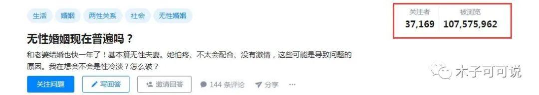 在知乎上有一个关于“无性婚姻现在普遍吗?”的问题,被浏览超过了1亿次。