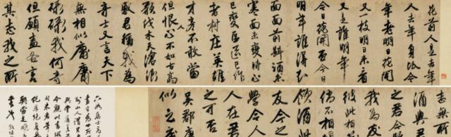 此卷书自作诗,诗意放达,任越不拘,在世情冷落之中,表达了对知己的感恩之情。直白如口号民歌,但却是真性情的流露,绝无描头画角的酸气。其书法也以雄直取胜,酣畅痛快,写的亦是心声。古人云:“书者心画也,”一吐方快,不计工拙,其精气神却跃然纸墨间了。故佳!唐伯虎遗墨一直为世所重,然民间流传极少,此卷多次出版与著录,识者其珍爱之。