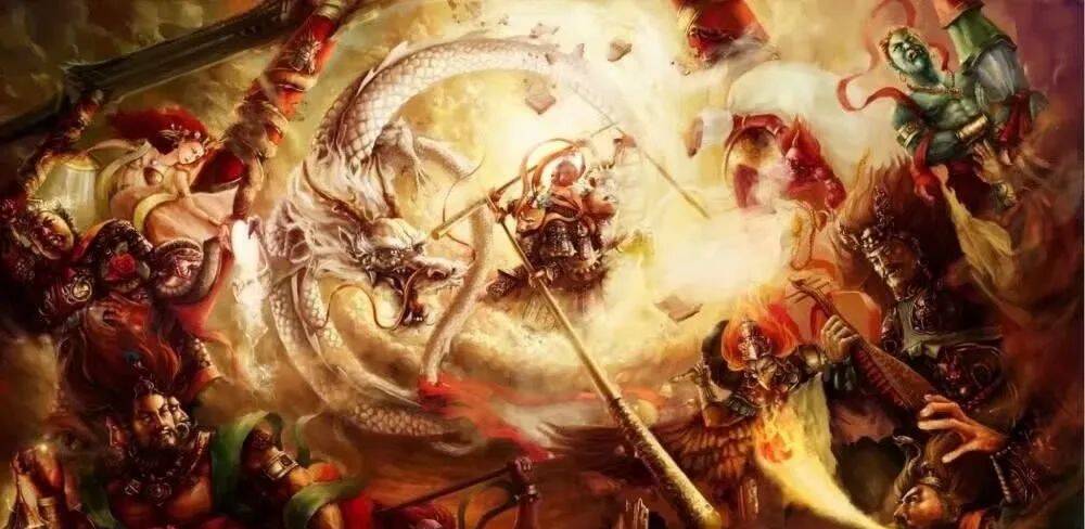 牛魔王现出本相,被哪吒用斩妖刀砍了好几个头,又取出火轮儿挂在角上,便吹真火,焰焰烘烘,烧得张狂哮吼,摇头摆尾。才要变化脱身,又被托塔天王将照妖镜照住本象,腾那不动,无计逃生,只叫:“莫伤我命!情愿归顺佛家也!”