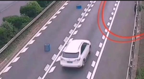 昨天上午9时许,在S1甬台温高速宁波往北仑方向25K处,一辆货物装载不规范的小货车驶过,多个塑料箱“调皮”地从车厢里跳了出来,遗留在路上并成为“路障”。一时间高速上险象环生,后方来车不得不紧急避让。交警通过公共视频看到了这一幕,立即通知路面执勤人员前去处置。但现场距离最近执勤点有18公里,到那至少需要10分钟,散落物在高速上多停留一秒,就多一分危险。