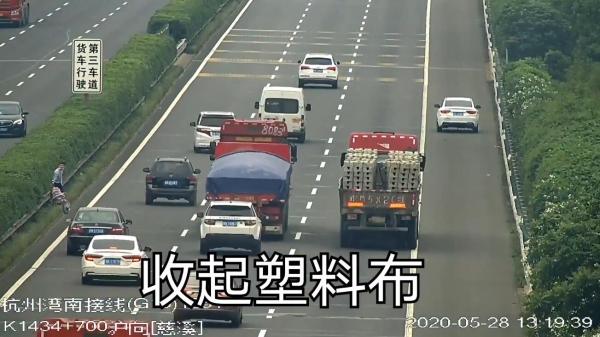 还有一个多月前发生的事,5月28日下午,在沈海高速往上海方向1434公里处,也就是距离慈溪收费站3公里的地方,一块巨型塑料布在超车道上随风飘动,后方来车纷纷避让。正当执勤人员赶去现场处置时,一辆白色轿车在应急车道上停了下来并开始双闪灯。随后,车上下来的小伙等候了4分钟,终于在一个车流间隙,穿越三个车道,成功清理了这一道路安全隐患。