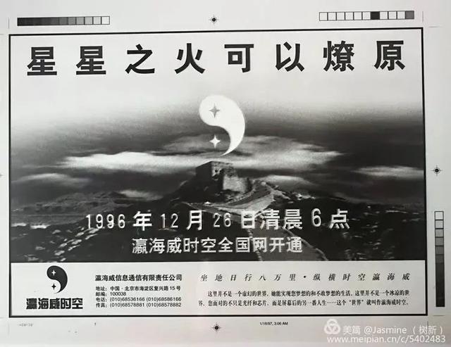 花了18万打这则广告的公司,叫做瀛海威。它是中国第一家互联网公司。