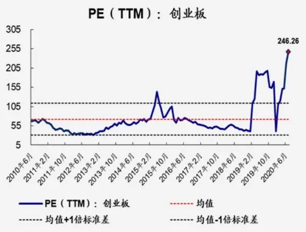 创业板方面,当前创业板的估值水平已经达到246倍,是2015年估值巅峰时期的将近2倍。