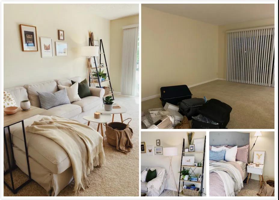 Dave和Emma是一对新婚夫妻,目前因为Dave求学之故,两人在美国旧金山湾区租了间建于1970年代、室内约20坪、一房一厅一卫的老公寓,考虑到仅短暂1年居住在此,选择了不动硬件装修的方式,透过家具、家饰、摆件的布置及陈设让整个老屋焕然一新。(来源:MyHome设计家)
