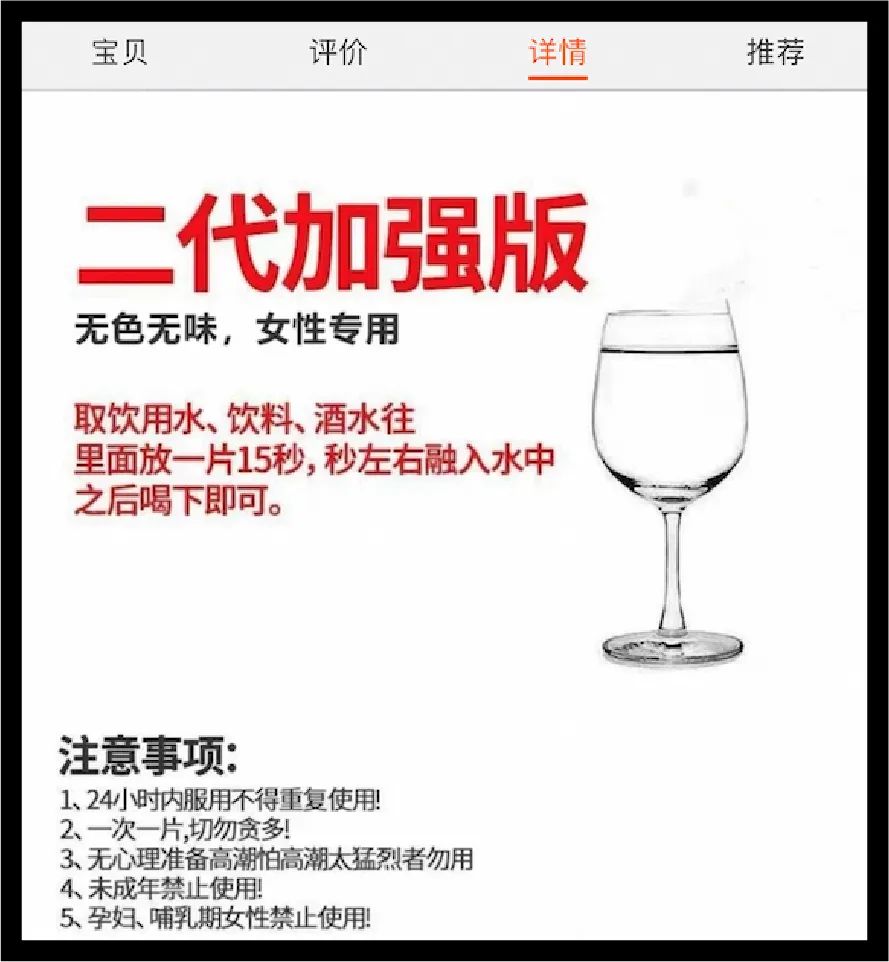 所谓催情药是号称能让女性“发情”的春药,这种药你在某宝某鱼上用一些关键词就能搜到,或片状或粉状或液体。