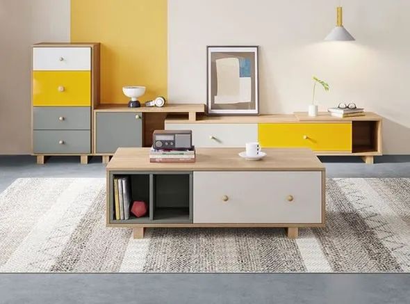 这款电视柜就运用了鲜明的色彩,破除了以往家具给人的呆板形象,更符合年轻人追求个性的一面。电视柜有抽屉储物、柜式储物和开放储物三种形式,能够满足客厅的日常收纳需求,让你轻松整理出一个干净、舒适的DREAM?HOUSE!
