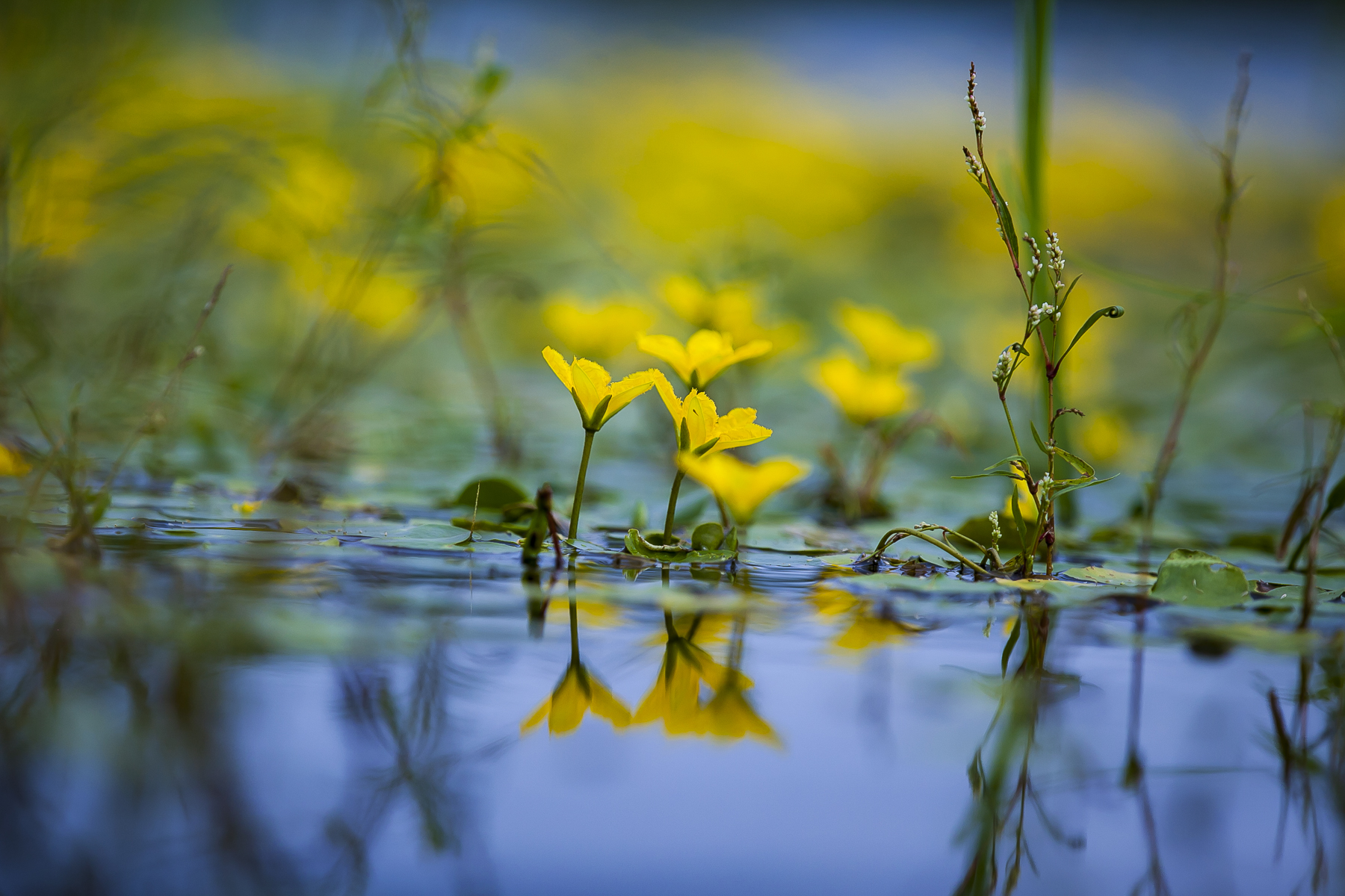 这里的河面上长满了黄色的小花朵,形似睡莲,小巧别致,金色的花朵挺出水面,将古里河装点的更多了几分姿色。许多人第一次看到,不知道这样美丽的小花朵是什么,其实,这就是荇菜。