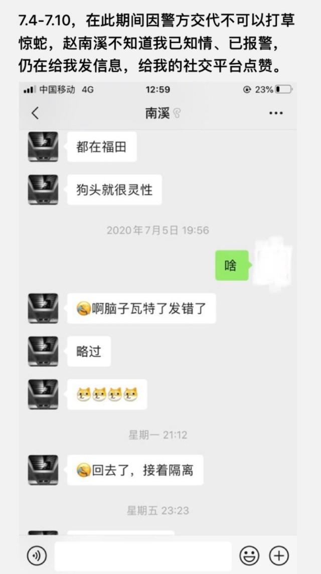 7月10日晚,小雪在朋友圈发布了时间的详细记述,仅仅五分钟后,便收到了赵某溪的语音电话。