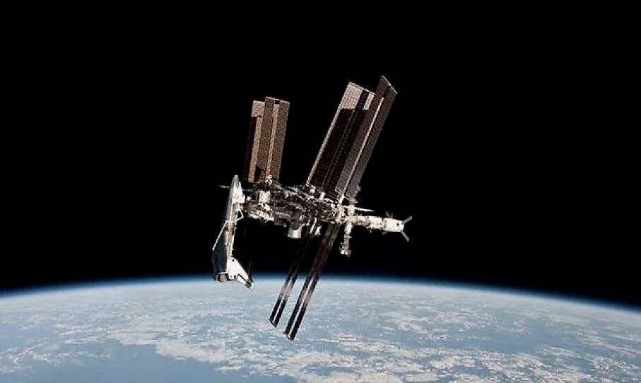 2011年5月23日,国际空间站和奋进号航天飞机在奋进号的最后一次任务中环绕地球飞行。一个国家能向另一个国家发射太空武器吗? 保罗内斯波利-欧洲航天局/美国宇航局盖蒂图片社