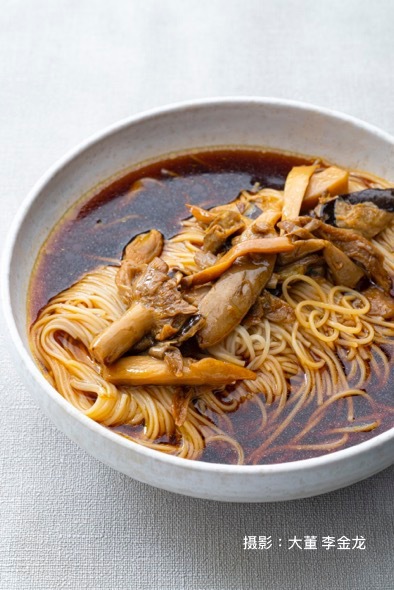 苏州的蕈油面一年四季都能吃到,“蕈”是松树底下的一种菌类,苏州人读“xùn”,长在苏州城郊的丘陵山林里面,蕈生长要有一定气候条件,就是需要温度比较高,一般在春天和夏天交接,夏天和秋天交接的时候生长。