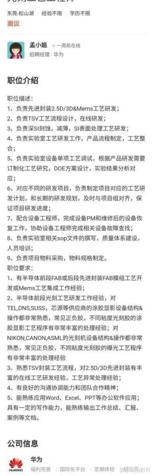 该博主说,华为最近大举扩招半导体行业的研发人员,波及范围甚广。