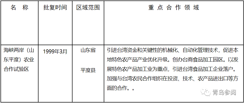 据公开信息显示,山东平度海峡两岸农业合作试验区位于平度市,于1999年3月获批成立。规划总面积3166平方公里。2001年12月在平度市南村镇建立试验区中心区,规划面积22.4平方公里,并加挂“青岛市农业高新技术产业开发区”牌子。
