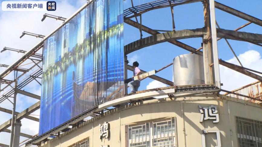 在另一处广告牌拆卸现场,3名工作人员正在对沿路的广告牌进行拆卸,1个多小时一块上百平方米的广告牌就被拆解完了。工作人员表示,周末他们就接到任务对广告牌进行拆除,每天组织十几个人分成多组进行作业,预计可在今天下午4点前完成所有广告牌的拆除工作,在台风来临之前消除广告牌的坠落隐患。(总台央视记者 杨军威 梁烨 金坚 )