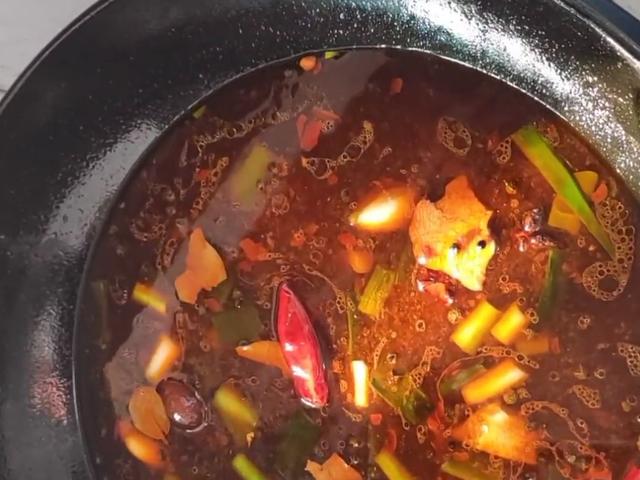 4、另起锅烧油,中火将油烧热后加入豆瓣酱炒出红油,放入葱段、姜片、蒜块和香料翻炒出香味,炒香后加入适量的清水和熬好的冰糖水,再加入少许的胡椒粉、1勺生抽、1勺香醋和啤酒3勺,最后再下入猪蹄,盖上锅盖开大火将料汁煮开;