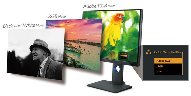 这款显示器进行了出厂校色,色彩准确度达到△E≤2,输出色彩更准确。覆盖了99%AdobeRGB、100%sRGB和95%DCI-P3色域,能实现印刷、修图和影视后期调色三种需求。