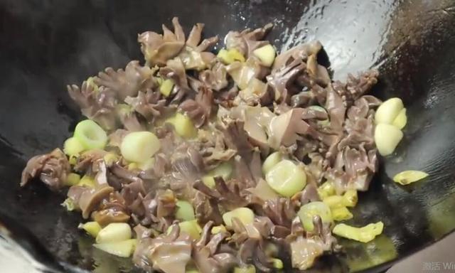 2、炒制鸭胗的过程要保持大火,快炒可以保持鸭胗的脆感。