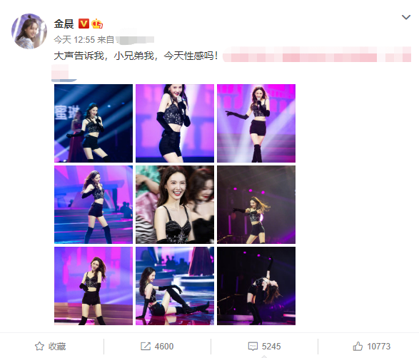 金晨晒《姐姐》热辣舞台照:小兄弟我,今天性感吗!