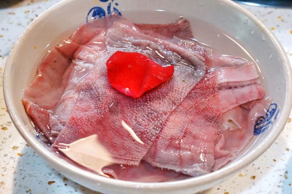 将其在水中浸泡一天,然后将毛肚上的杂质抖除,将其铺在菜板上,一层一层地铺开腹部的叶子,然后用水反复洗涤黑色薄膜和草味,切掉边缘腹部门的油皮,是由一张大叶和小叶沿着纹路切开,然后将每片叶子拉直并弄平,切成薄片约1、5厘米宽,并用冷水漂洗。