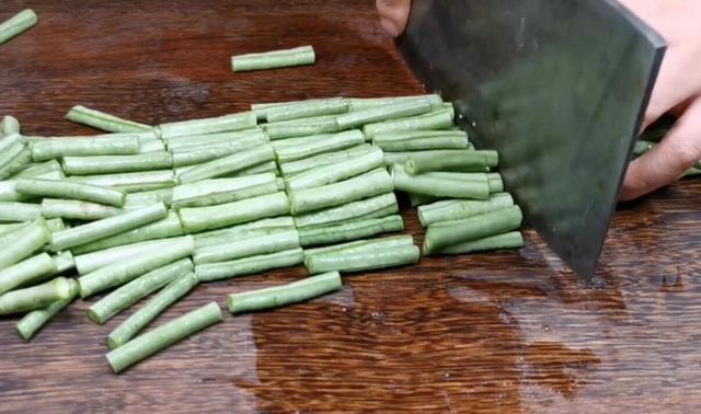 2、豆角炒制之前先焯水1分钟,加入盐和食用油可以使豆角更加翠绿,吃起来更脆。