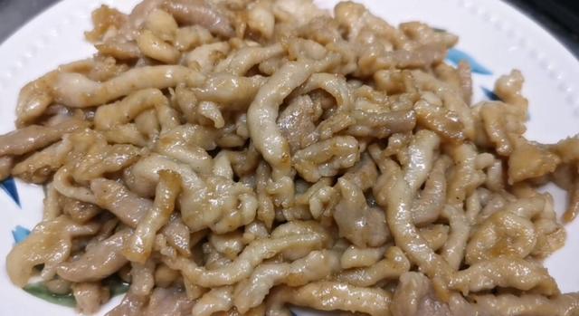 3、滑熟肉丝时开小火,这样炒出来的肉丝非常滑嫩。