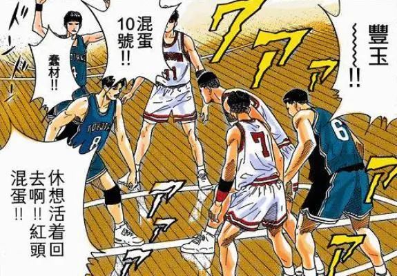 这个时候樱木站出来了,当然也有点被迫的意思,樱木一上场就被丰玉的流氓粉丝盯上了,樱木也是顺势去挑衅了岸本一番,可以说樱木极度轻视岸本乃至丰玉的语气,令丰玉球员们很不爽啊,在局面上,丰玉球员最起码知道,湘北并不是那么怂的球队,这场比赛不会是一面倒的比赛。