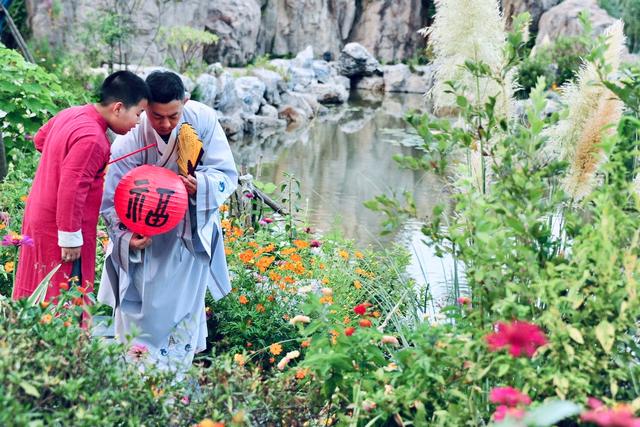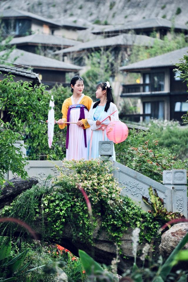 葛仙村度假区内,身着汉服的游客cos自己的江湖轶事。选一只团扇,挑一把油纸伞,提一只花灯,徜徉于葛仙村仙气十足的街巷中,分明就是一场访古之旅,沉浸地感受远古时分的风雅。