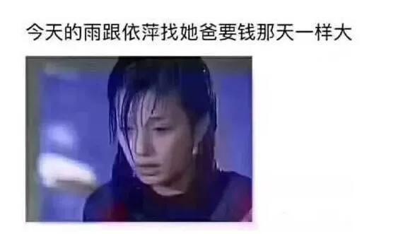 此外分手必下雨的梗也被网友玩坏了,如何形容雨下的大呢?网友类似于“今天的雨跟依萍去找爸爸要钱的那天一样大”等的评论也是层出不穷。