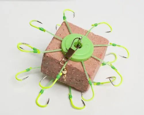当然,也可以使用商品饵做爆炸钩的鱼饵,比如,我想钓青鱼、草鱼、那抛竿鱼钩我们可以用串钩,直接挂商品饵颗粒就行了,我想钓鲶鱼,直接串钩上挂活泥鳅、虾、大蚯蚓即可,活的荤饵对鲶鱼有着无法抵抗的诱惑。再有的钓友说了,我不想麻烦自己制作饵料,也可以,那就用翻板钩,直接购买方块料,钓什么鱼就选什么味型的方块料,确实是省事不少,又干净。