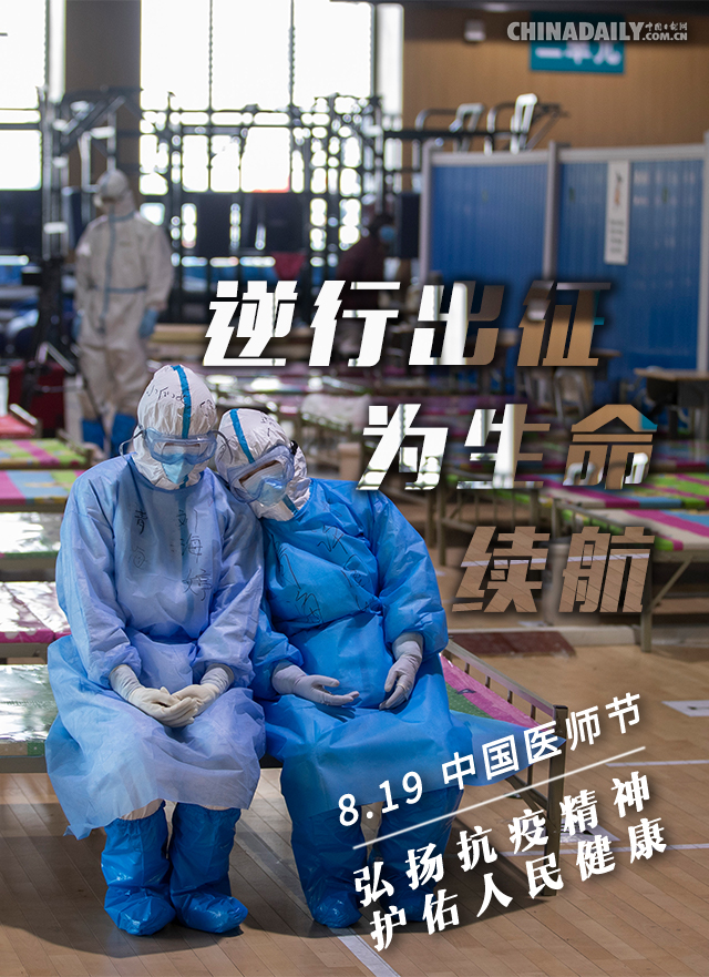 2020年8月19日是第三个中国医师节,今年的主题是“弘扬抗疫精神,护佑人民健康”。在新冠肺炎疫情防控中,广大医务工作者白衣执甲、逆行出征。他们同时间赛跑,与病魔较量,筑成护佑人民健康的钢铁长城,用实际行动践行了白衣天使“敬佑生命、救死扶伤、甘于奉献、大爱无疆”的崇高精神。