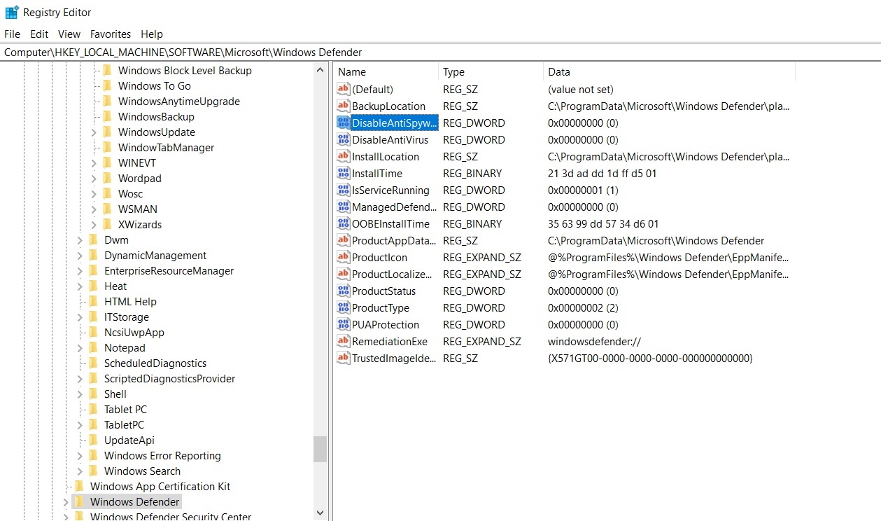 完成上述步骤后,Windows Defender 将被永久禁用,你可以随时使用上述方式重新启用它,只需要将 “DisableAntiSpyware”的值改为 “0”。