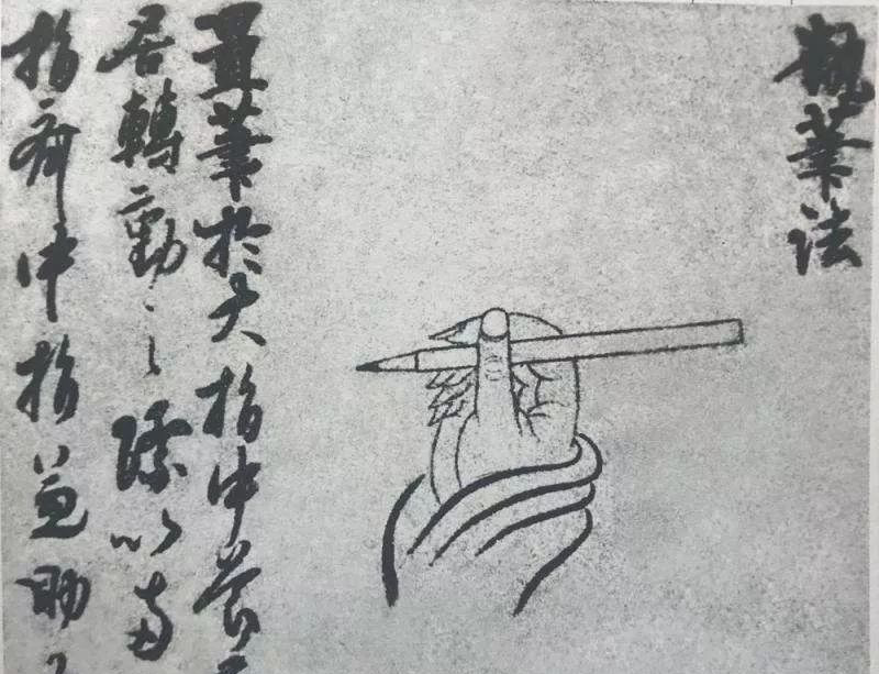 读孙晓云《书法有法》,书里有日本空海《执笔图》,绘执笔的手姿,与孙过庭说到的《笔阵图》“中画执笔三手”相似。图的左侧写有“执笔法”说明文字:“置笔于大指中节前,居转动之际,以两小指齐中指,兼助为(力)”,正是“单钩”执笔的要领。空海和尚是日本平安初期三大书家之一, 9世纪初来唐朝求法,估计这件《执笔图》摹自中国。