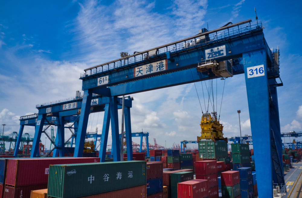 8月7日,天津港集装箱码头有限公司自动化堆场(天津港集团供图)