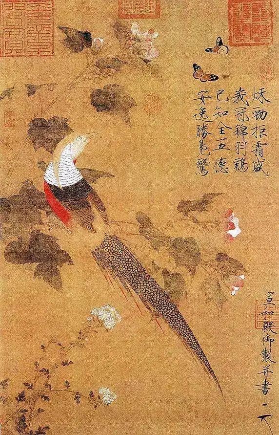 他热爱画花鸟画自成“院体”。在位时将画家的地位提到了中国历史上最高的位置,还成立了翰林书画院,即当时的宫廷画院。
