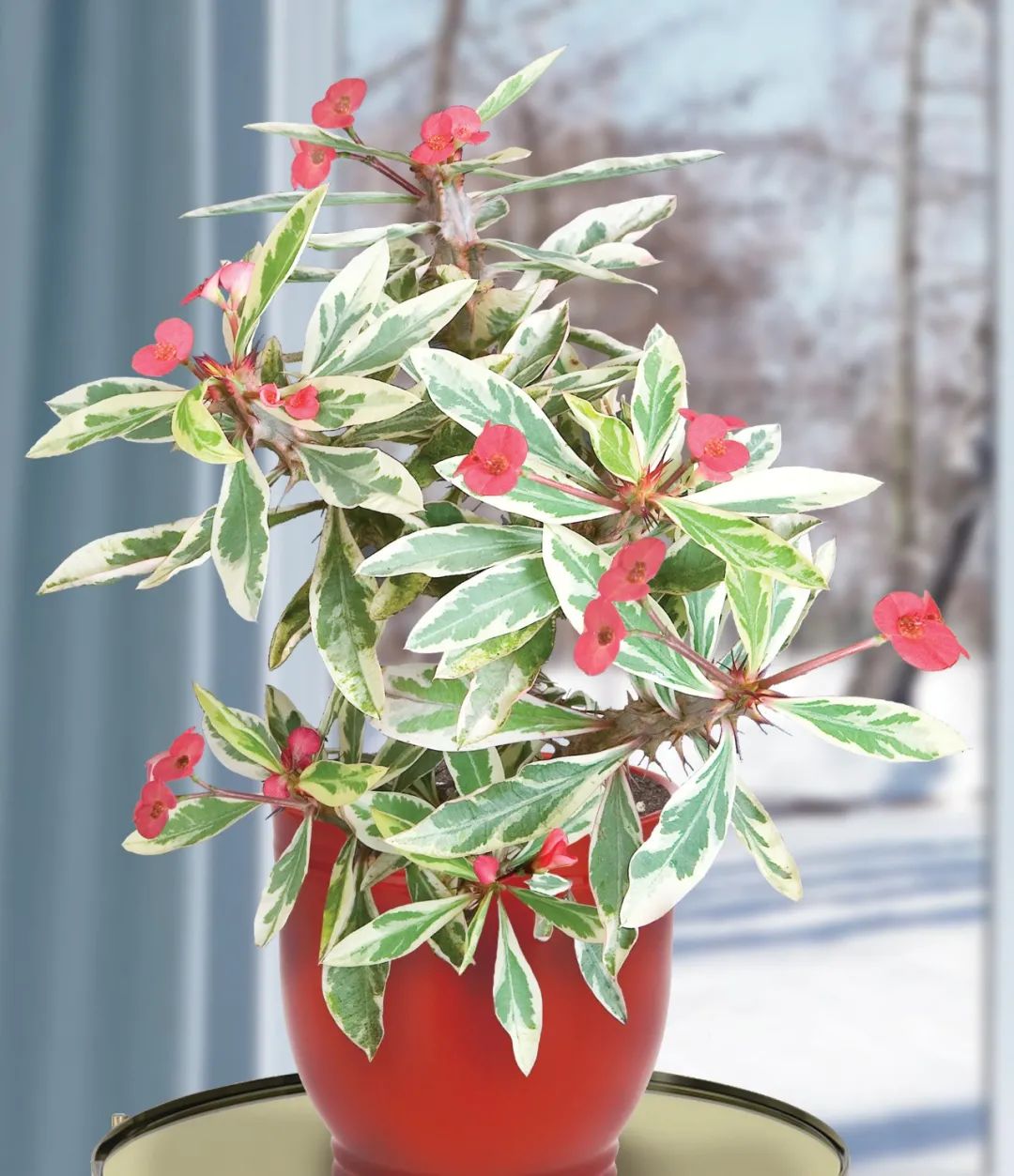 虎刺梅是热带地区的一种四季花卉,当然在北方地区也可以维持春夏秋三季持续不断地开花,花期极长,若是温度能够维持在15度以上,那就经常可以看到它的花朵,即便是在冬天也能开花。