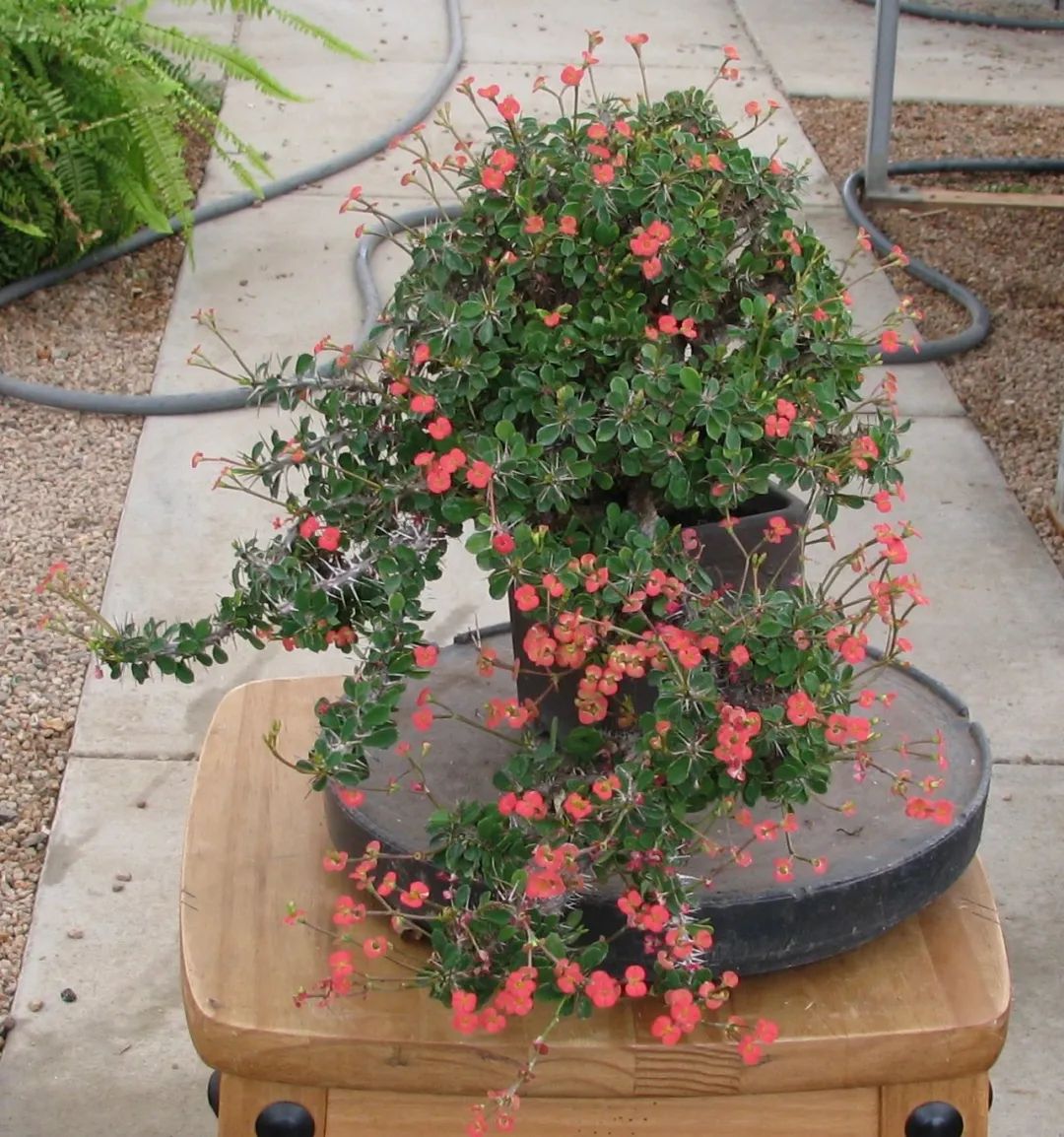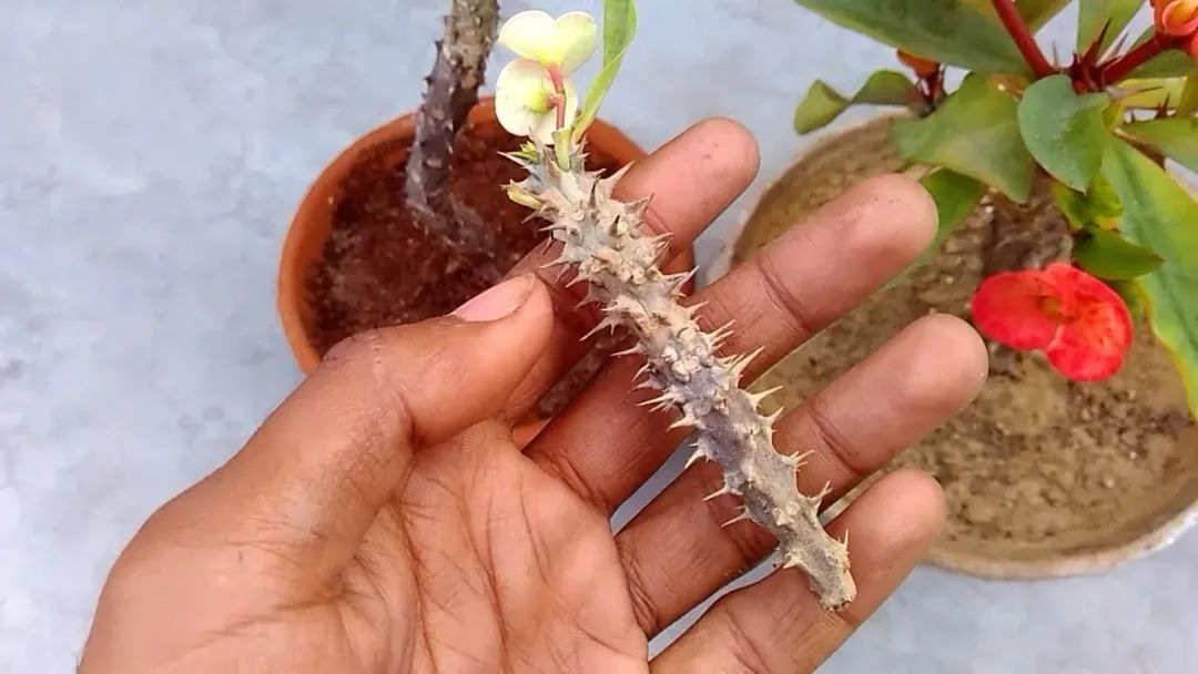 其实我们还有很多方法来处理虎刺梅,担心会有小孩碰触,会扎伤人,那不妨将虎刺梅嫁接在龙骨上,一些植株非常高大的龙骨,长得健壮,用一些高脚花盆栽种,小孩根本就碰不到,我们只需要将虎刺梅嫁接在龙骨的顶端就可以了。