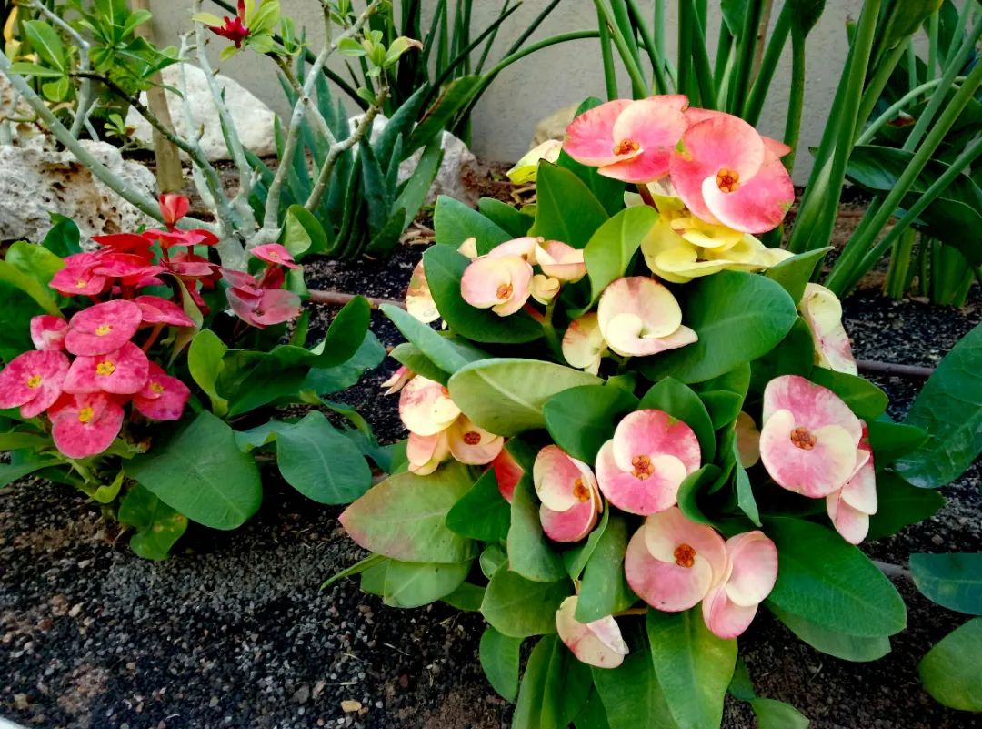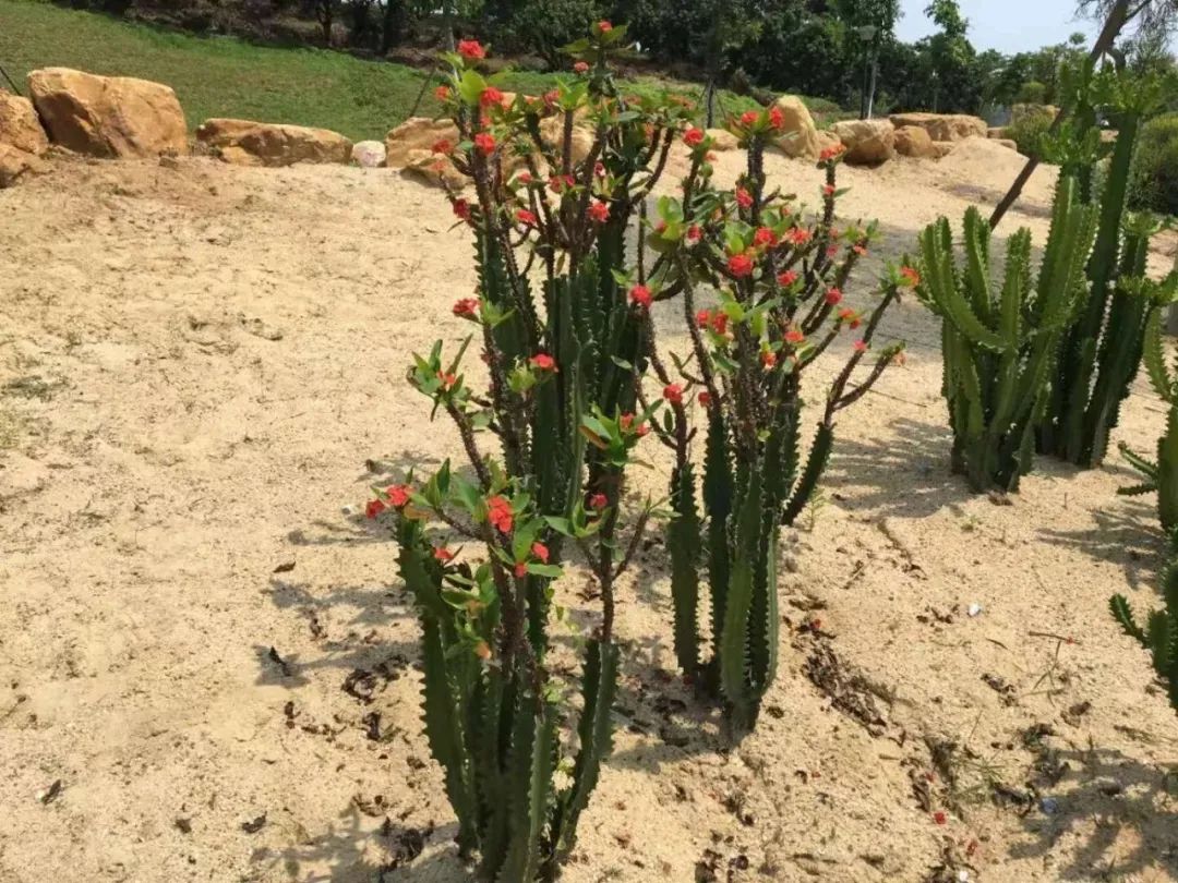 虎刺梅本身就是比较好养的,特别是在广东、广西、云南、海南和福建等地,就可以直接将虎刺梅露养在户外,甚至是直接将虎刺梅养在花盆中,摆放在光照充足的露台或阳台上,基本上全年都不用打理,依旧可以开花灿烂。