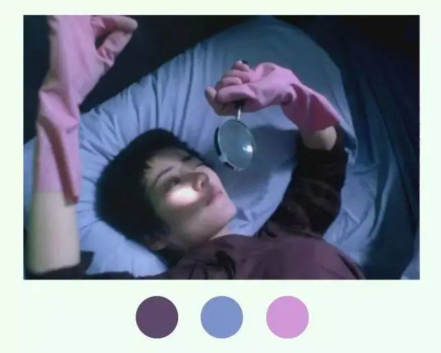 王家卫电影的色调风格往往是互补色中又存在着对比色。画面整体给你的感觉是相对和谐的,但总会有一些柔和的对比色出现在其中。