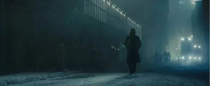 当K走在街上,他的身影映衬着寒冷的环境,他不必说一个字,电影调色板就已经揭示了他目前的情况和未来的不确定性。因为在电影调色板中,蓝色代表忧郁和孤立。