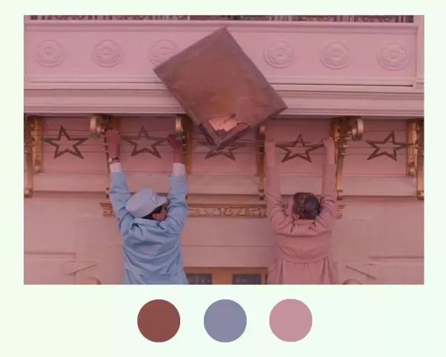 而以粉色为基调,也是《布达佩斯大饭店》的特色。从而渲染出古老的欧洲时代的独有感觉。