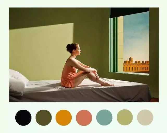 这几组配色大多是以偏冷色调为主的,辅之以少数的亮色作为互补色来突出画面张力主体的青灰色调为原本饱和的色彩蒙上一层朦胧的质感,显示出怀旧复古的风味。