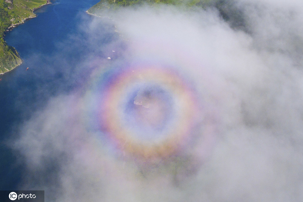 Sam Rowley居住在英国布里斯托尔,经常喜欢用无人机俯拍美景,他前往苏格兰因弗加里露营度假时,拍摄到十分罕见的“圆形彩虹光环”奇特天象,这种光学现象是由阳光与薄雾或云层中的水滴相互作用而形成的。