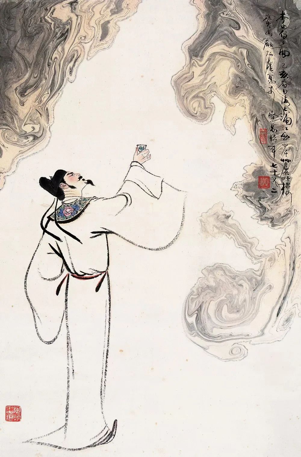 ▲“诗仙”李白劝自己喝酒:“举杯邀明月,对饮成三人”。(图片来源:三联生活周刊)