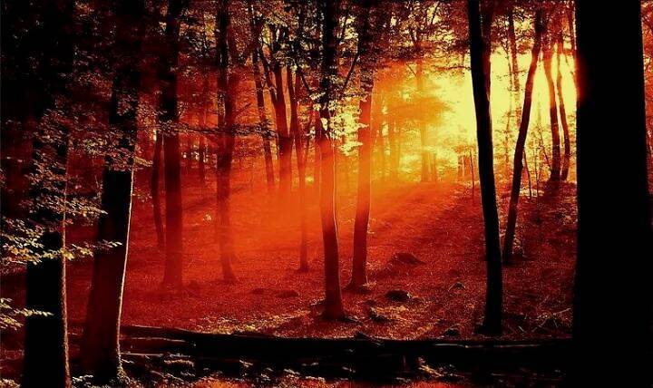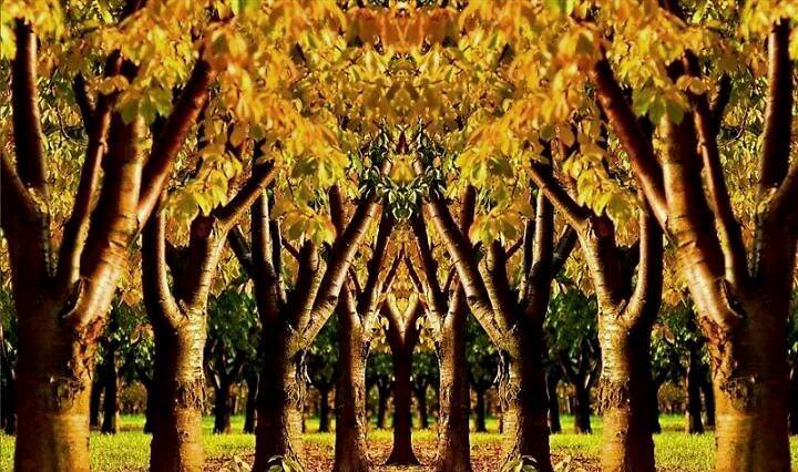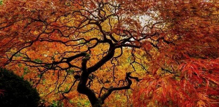色彩与光线组合,光线为主,秋叶得叶脉纹理分明、质感强。树影之间,层叠的树叶,光影的强弱,构成强烈的局部震撼的效果