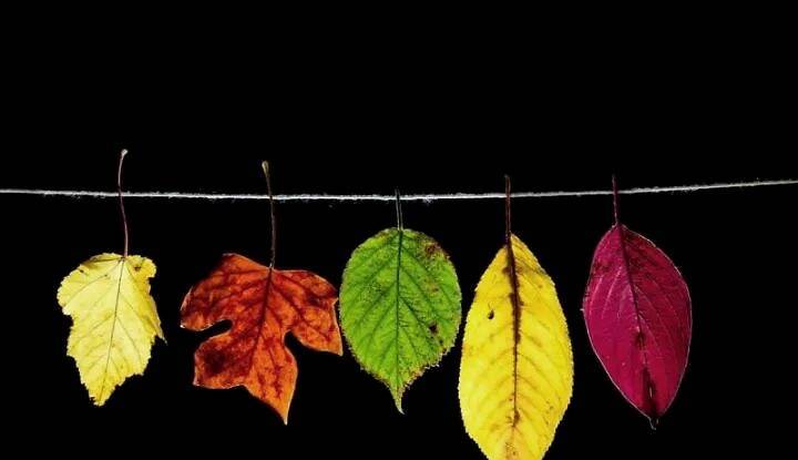 你可以收集各种色彩的落叶悬挂在黑色或者深色的背景处,通过逆光,赋予秋天生命的颜色。