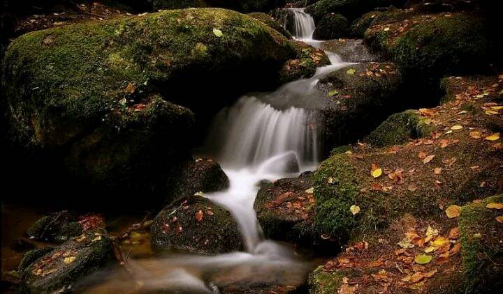 秋天是拍水的好时机,不仅因为秋天金色的树叶与光影适合拍摄流水。同时因为秋天的小溪的流水不像夏天那么湍急,小小细流更适合拍摄慢门效果。