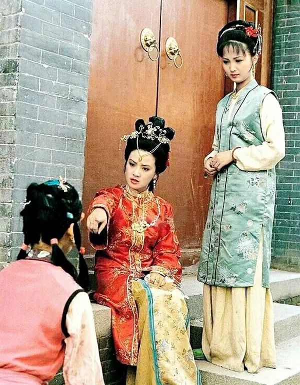 紧接着书中交待,有着"一双丹凤三角眼,两弯柳叶吊梢眉"的王熙凤在一群媳妇丫环的族拥下从后房门出来,打扮得"恍若神妃仙子"。