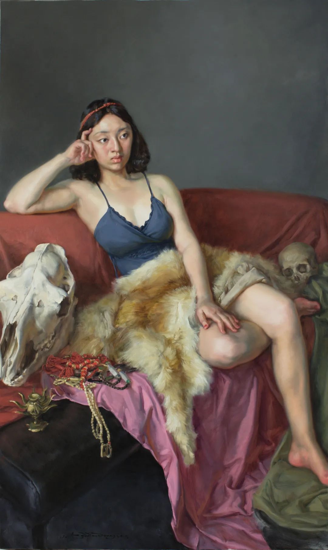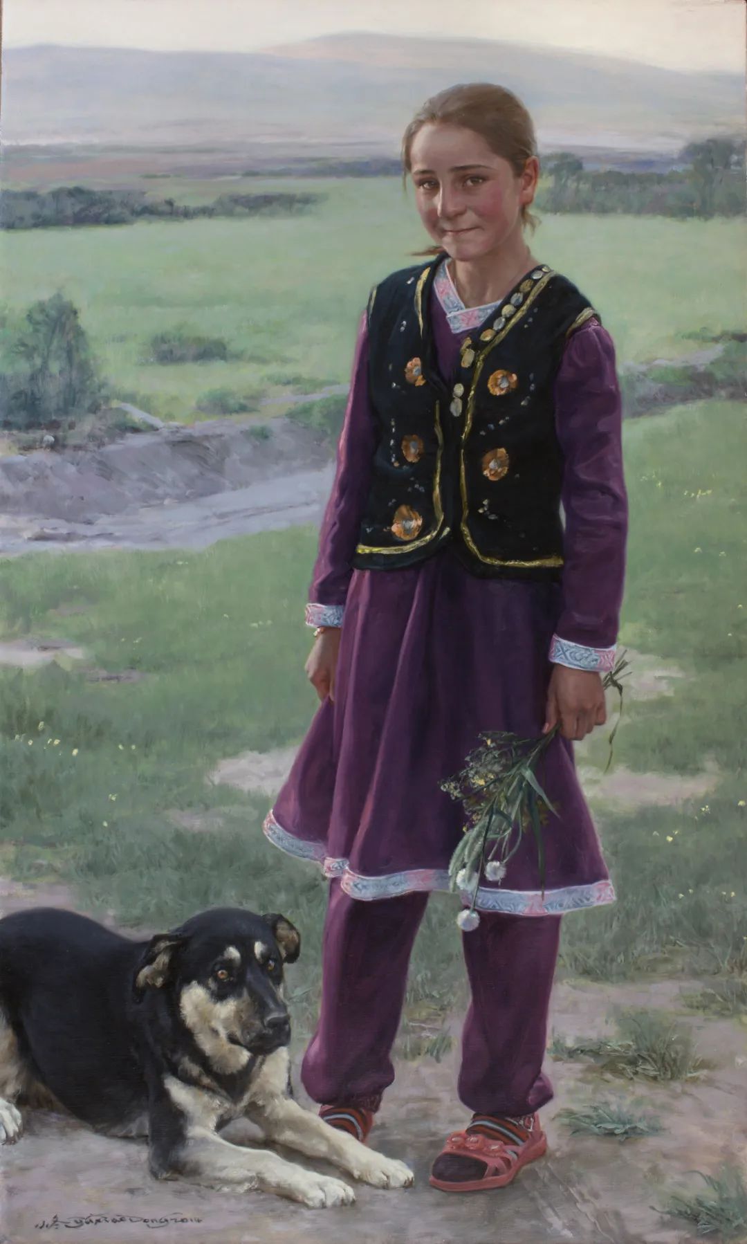 ▲《夏热瓦纳和她的狗》 2014年 90X150cm